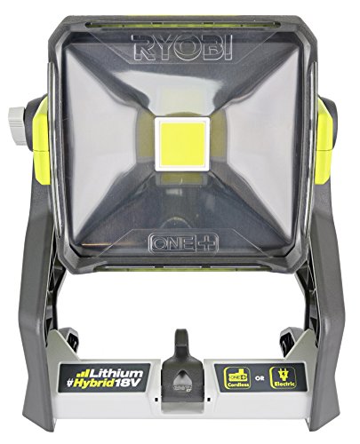 ▶ RYOBI One+ 1,800 Lumen 18V Hybrid AC and Lithium Ion Powered Flat Standing LED Work Light with Onboard Mounting Options (Battery and Extension Cord Not Included, Light Only)