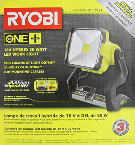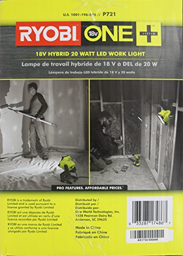 - OPCIONES DE ENERGÍA MÚLTIPLES: puede usar las baterías de 18 V de Ryobi (no incluidas) para mantener esta luz encendida durante horas, o puede enchufarla a un cable de extensión (no incluido) para mantenerla encendida indefinidamente.