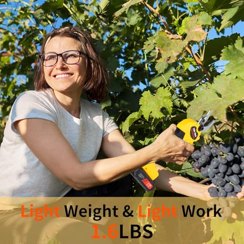 - Amplia aplicación y ligera: versátil y pesa menos de 2 libras, esta podadora eléctrica es ideal para jardines, huertos, granjas, parques e invernaderos. Corta fácilmente vides, cerezos, manzanos y mucho más. La podadora inalámbrica ergonómica y ligera hace que la jardinería sea cómoda y sin esfuerzo para todos: jóvenes o mayores, mujeres u hombres.