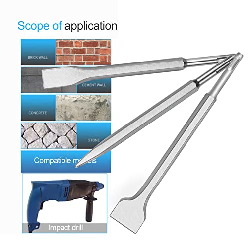 ▶ Juego de broca cinceles para taladro de martillo, juego de brocas para martillo giratorio, 3 piezas, incluyendo cincel de punta, cinceles planos, cinceles con manivela con funda de transporte