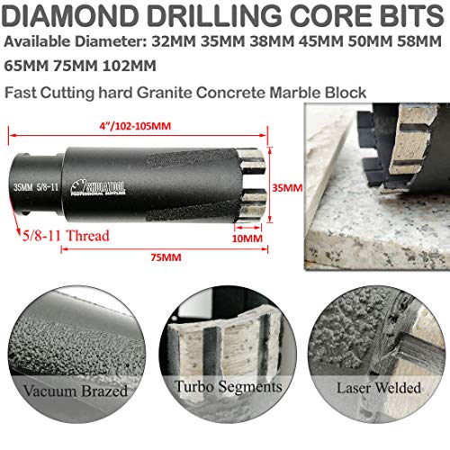 ▶ Brocas de diamante de 1-1/2 pulgadas para piedra dura, hormigón, mármol, granit SHDIATOOLo, ladrillo, soldadas con láser, sierra de agujero seco o mojado,38mm