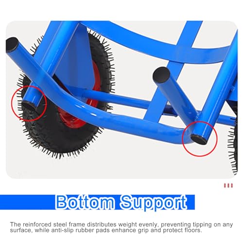 - Soporte inferior: Este carrito ofrece una estabilidad excepcional para cilindros de gas. La base de acero reforzado distribuye el peso uniformemente para evitar vuelcos, mientras que las almohadillas de goma antideslizantes protegen el suelo y mejoran el agarre.