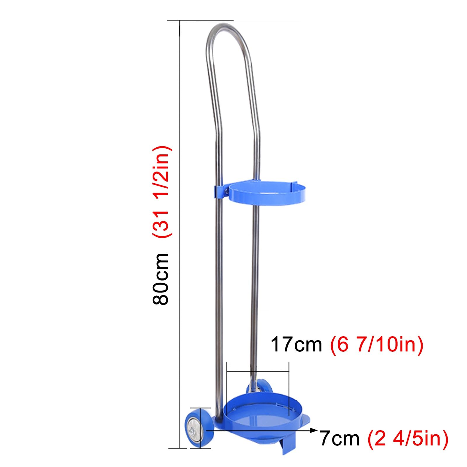 Carretilla de mano para tanque de oxígeno con ruedas, altura 80, 95 y 110 cm, cilíndrica inclinable, robusta, móvil, para una sola botella.(H 80cm(31 1/2in))