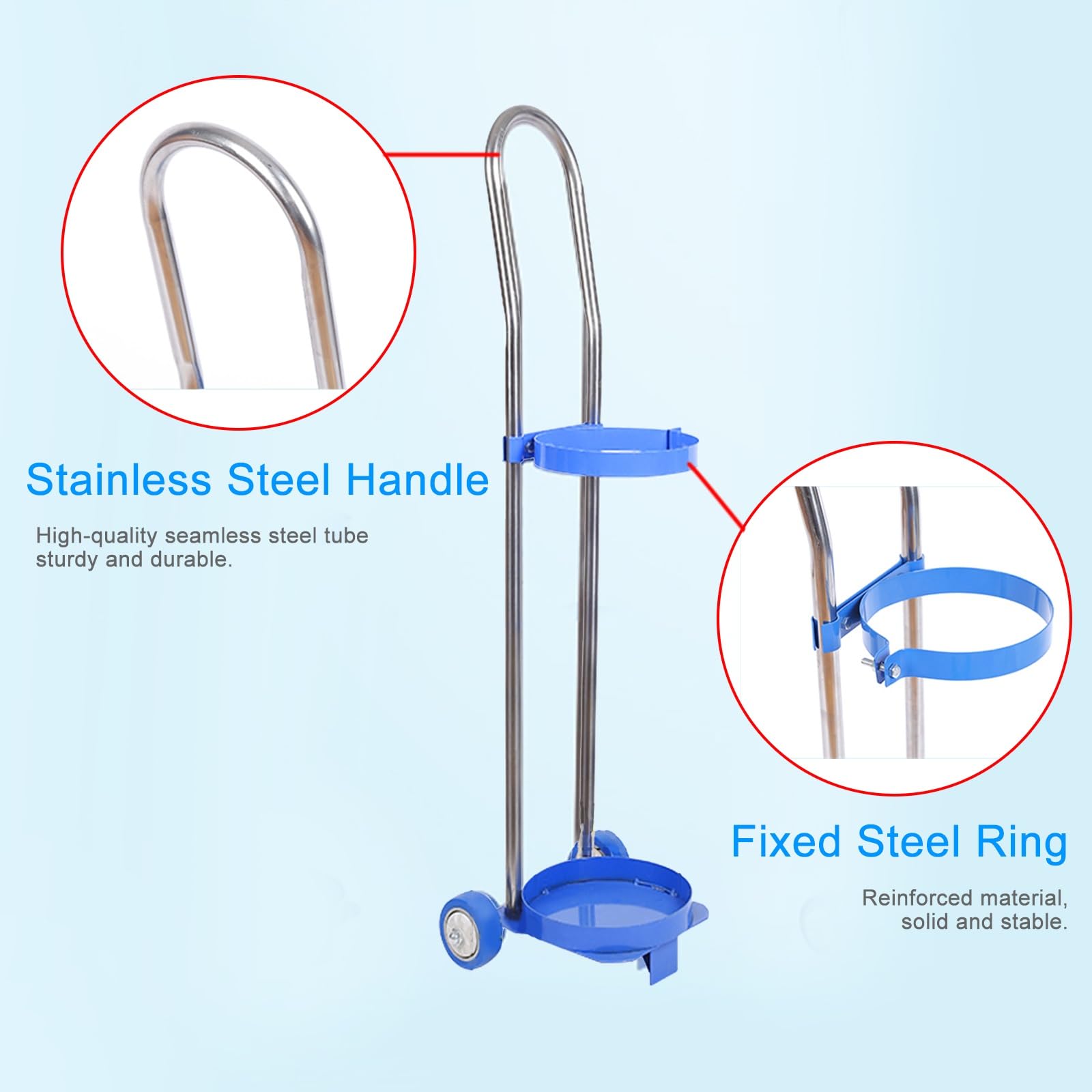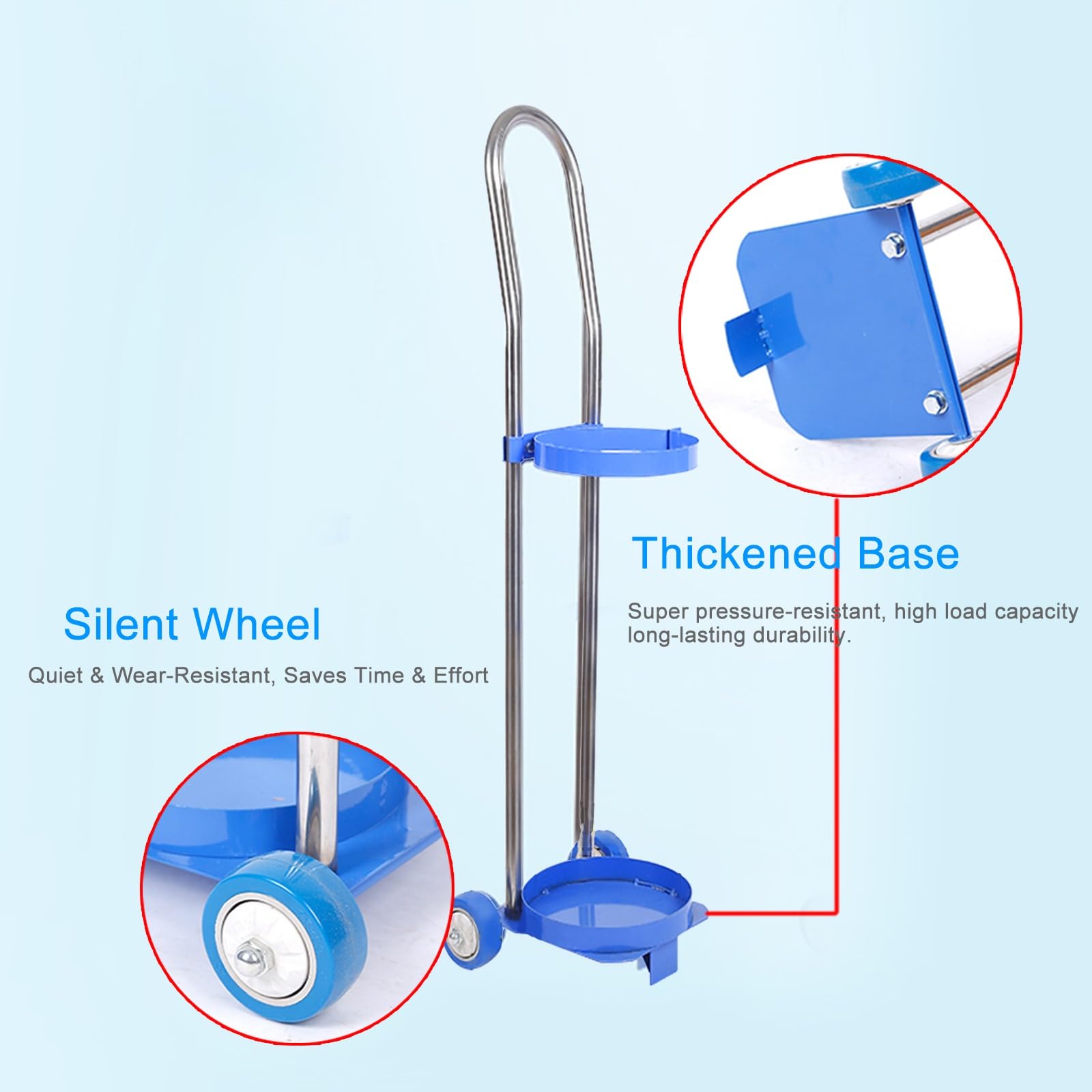 - Se adapta a todos los cilindros de gas comunes: este carrito para tanques de oxígeno está especialmente diseñado para el almacenamiento y transporte seguro de varios cilindros de gas, lo que lo convierte en la solución perfecta para manipular oxígeno, argón, monóxido de carbono, propano, helio y más.