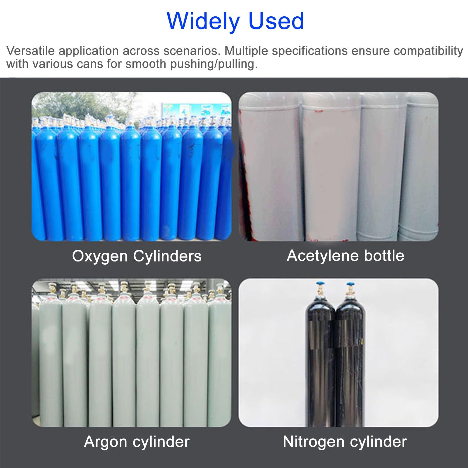 - Adecuado para botellas: nitrógeno, argón, hidrógeno, cloro, helio, oxígeno, acetileno y otros tipos de tanques cilíndricos.