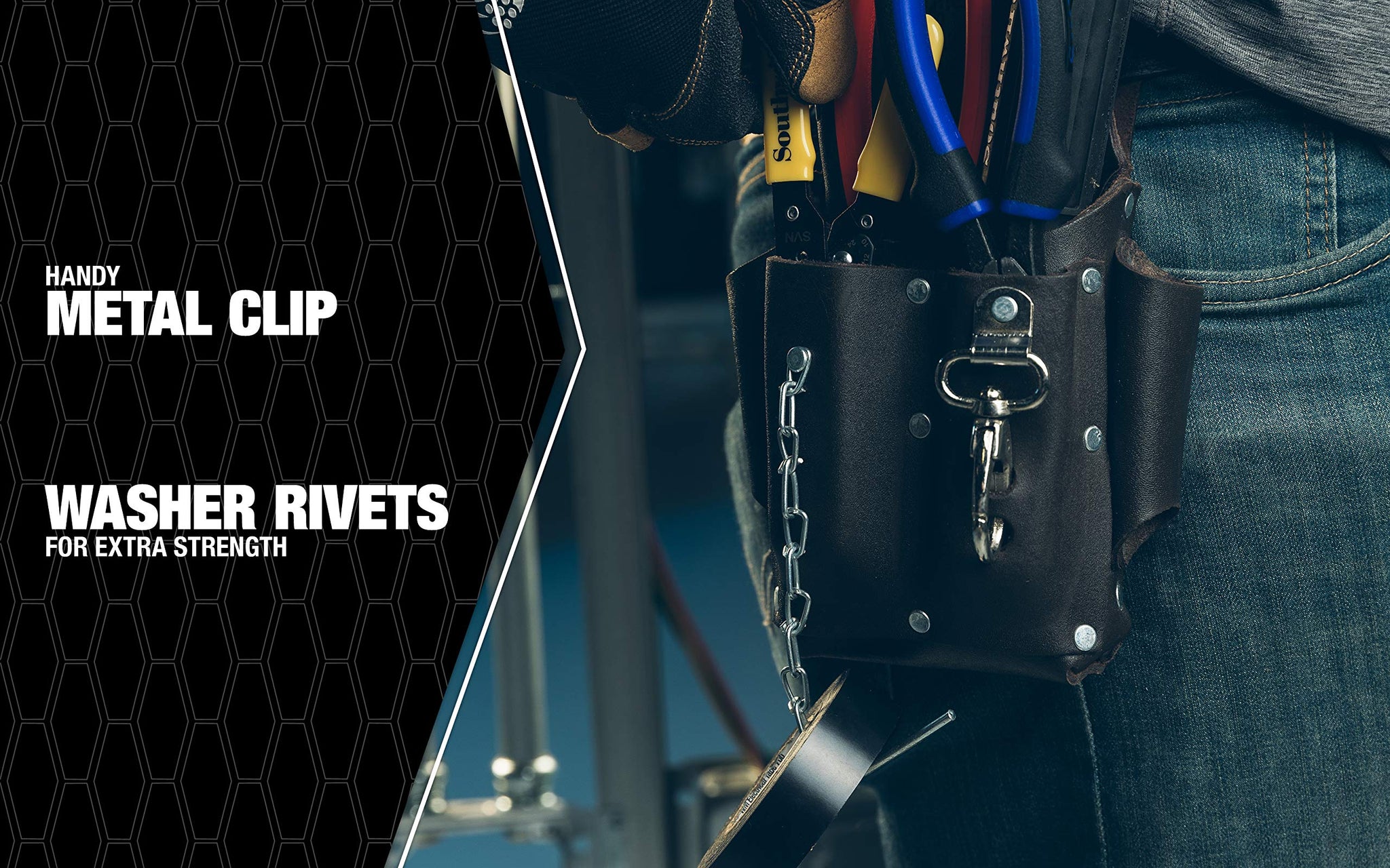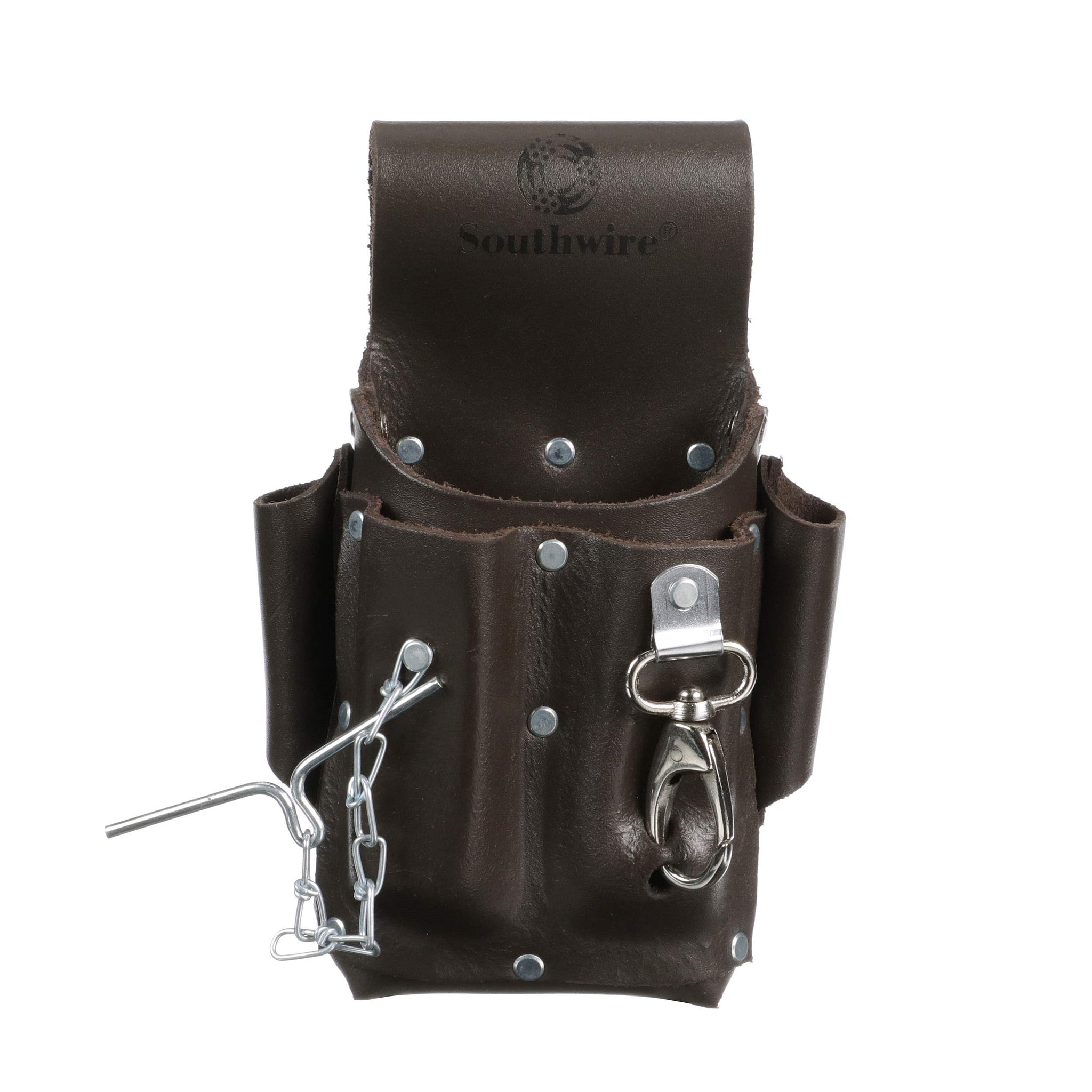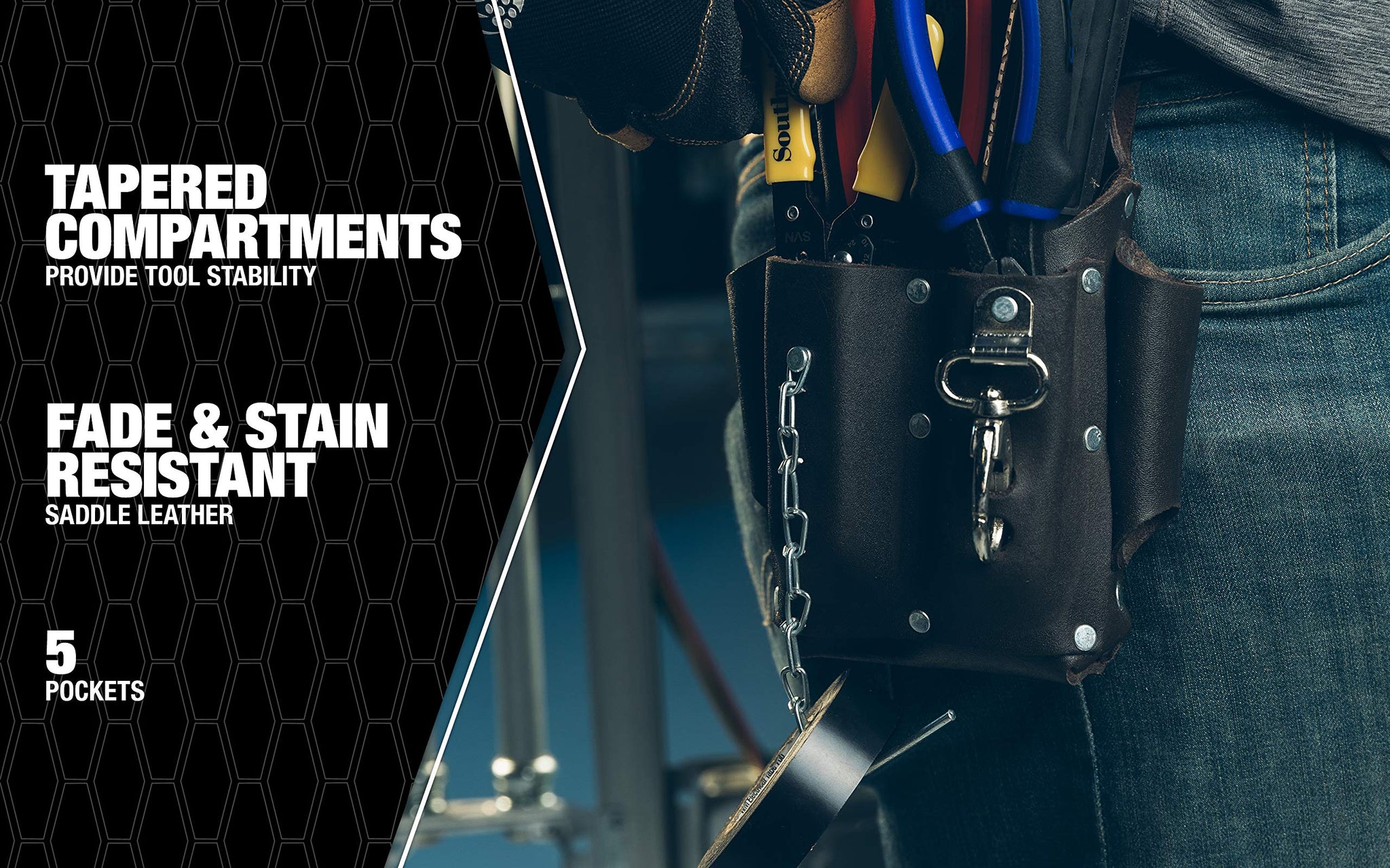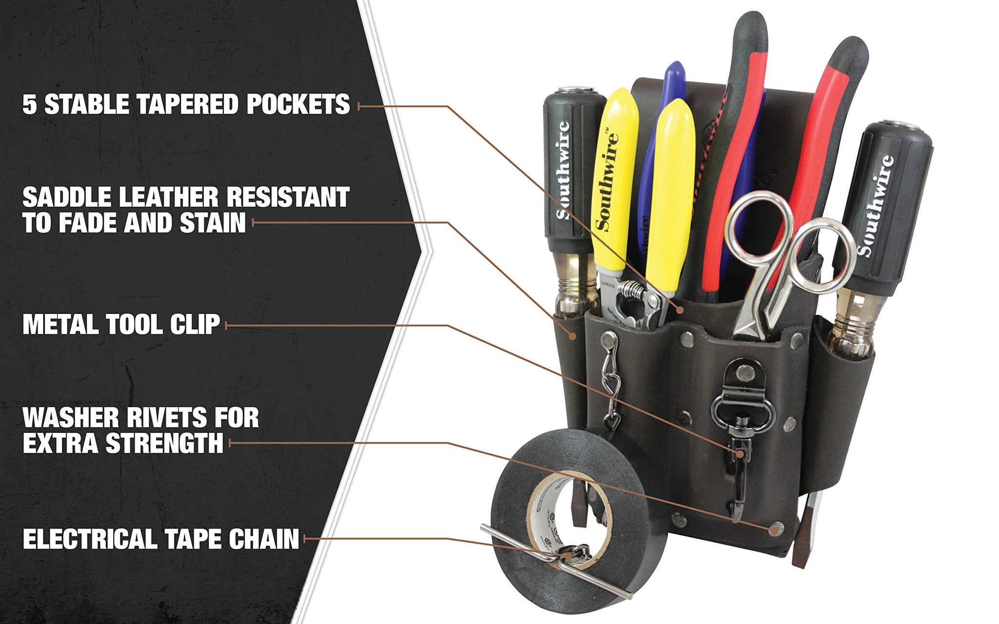 SOUTHWIRW POUCH4 Bolsa de Herramientas de Piel; Bolsa de 5 Bolsillos con Cadena de Cinta eléctrica; Resistente a la decoloración, Compartimentos duraderos; Remaches de Lavadora; Incluye Clip de