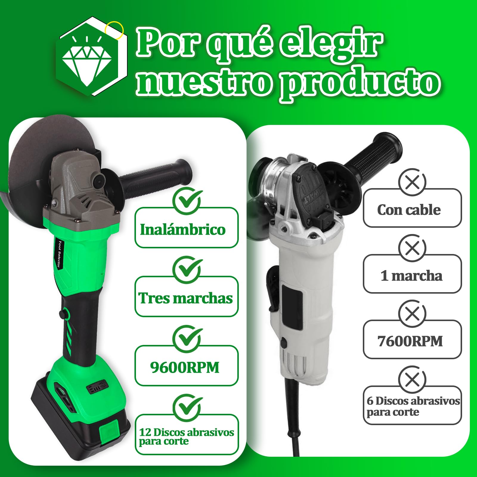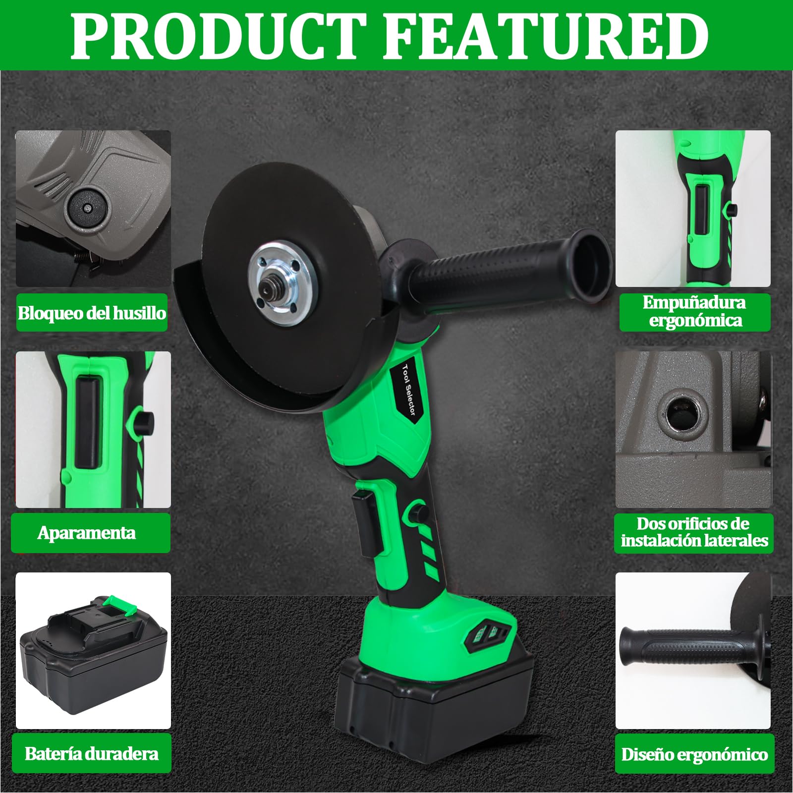 - 🛠️MOTOR SIN CEPILLO DE ALTA EFICIENCIA: La amoladora angular inalámbrica está equipada con un motor sin escobillas, que es más estable que los motores tradicionales con escobillas; además, los imanes de cobre de alta calidad de la amoladora angular están diseñados para proporcionar un funcionamiento más estable y suave, lo que protege la vida útil de la máquina.