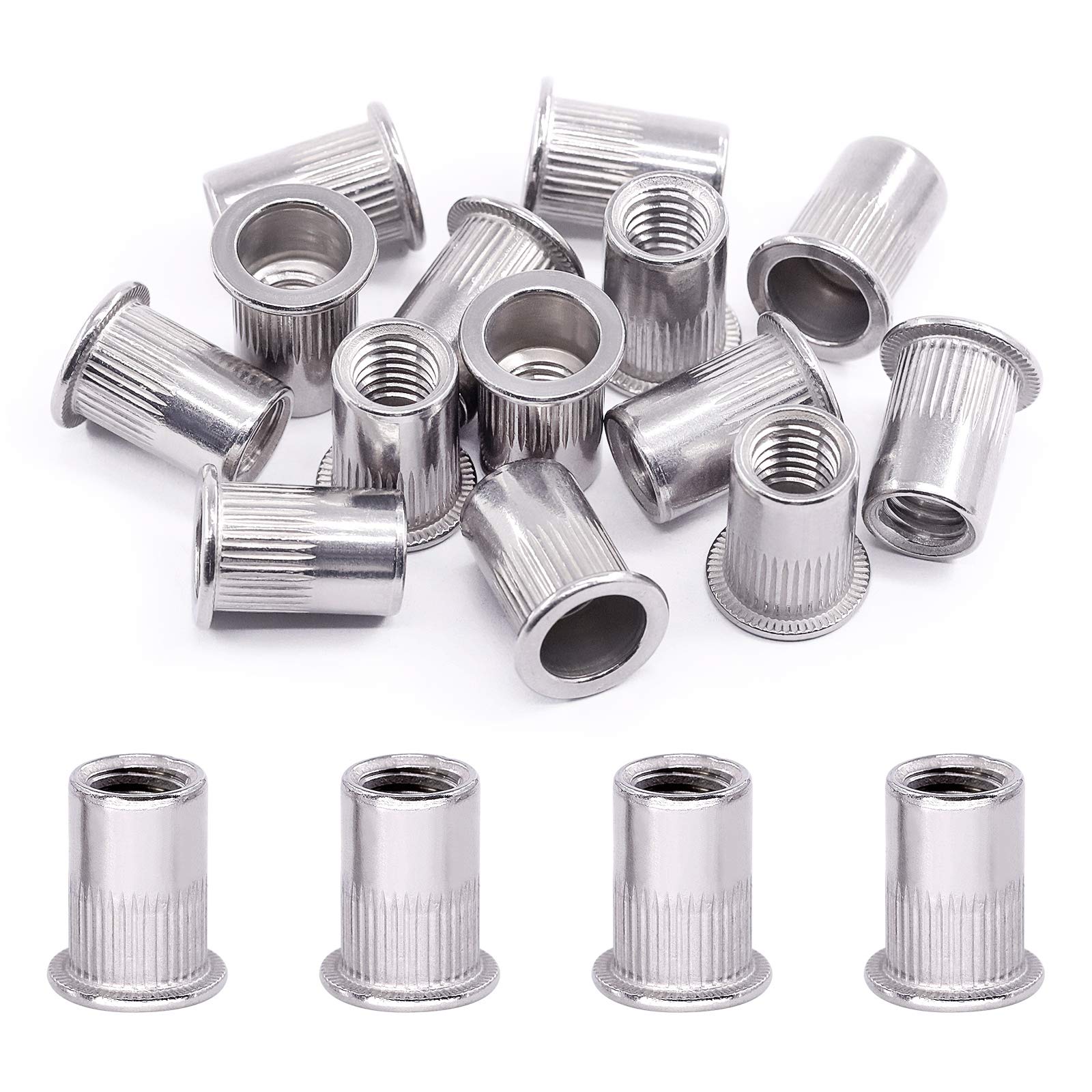🔩 Swpeet - Juego de 20 tuercas de remache estriado de acero inoxidable 304 de 3/8 a 40,6 cm de cabeza plana roscada para automoción, muebles, decoración