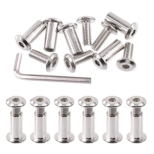 🔩 Swpeet Juego de 25 tornillos de encuadernación chapados en níquel M6 x 16 mm, tuercas hexagonales, kit surtido de tuercas de barril con 1 llave Allen, poste de tornillo para muebles, cinturón avellanado