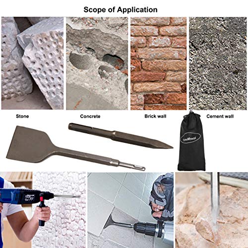 - Amplia aplicación: con vástago redondo, estos cinceles aplicables a todos los martillos SDS-plus, y ampliamente para la extracción y perforación de hormigón, ladrillo, mampostería y granito, y cinceles huecos de ranura especial utilizados para la eliminación de paredes, azulejos y cemento, también para ranuras de alambre.