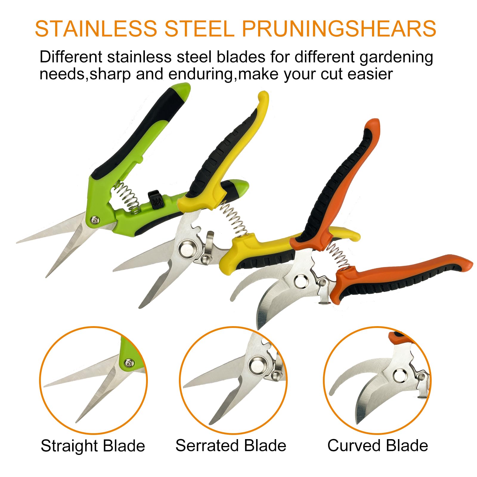 Las tijeras de podar para jardinería incluyen 3 cuchillas y guantes diferentes para una variedad de trabajos de poda general. Ideal para recortar flores, plantas, bonsai, hidroponía, hierbas, luz.