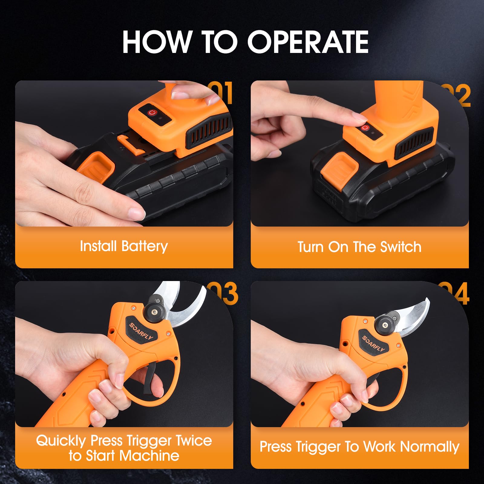 - Modo de suspensión inteligente: para mayor seguridad, estas podadoras eléctricas cambian automáticamente al modo de suspensión después de 1 minuto de inactividad y emite un pitido para alertar. Para reiniciar, simplemente presiona el interruptor dos veces, asegurando una mayor seguridad durante el uso.