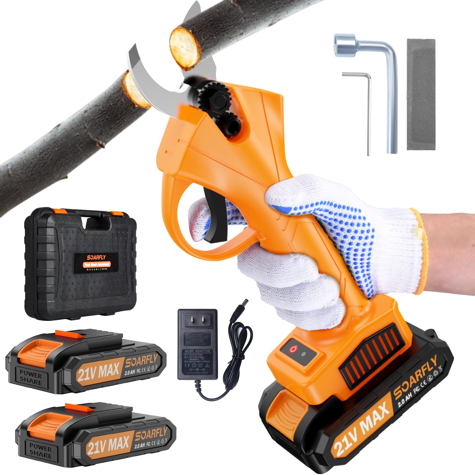 - Batería de larga duración: disfruta de sesiones de poda prolongadas con las dos baterías recargables de 21 V y 2000 mAh, proporcionando hasta 6-8 horas de tiempo de funcionamiento con una carga completa. Ideal para tijeras de podar inalámbricas que garantizan un funcionamiento ininterrumpido. (Carga completamente antes del primer uso).