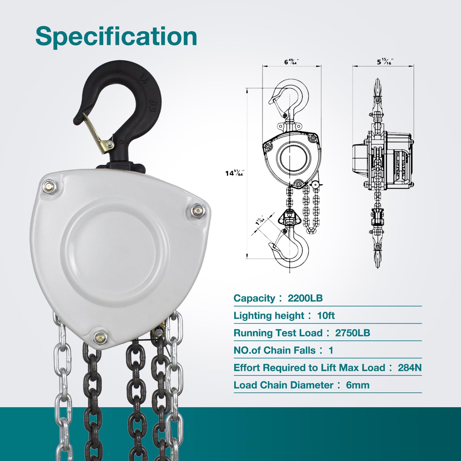 - Especificaciones: el polipasto de cadena TOYO de 1 tonelada para levantar o arrastrar a una elevación máxima de 10 pies. Viene ha sido sometido a una prueba de carga dinámica de 1.25 veces más segura y duradera.