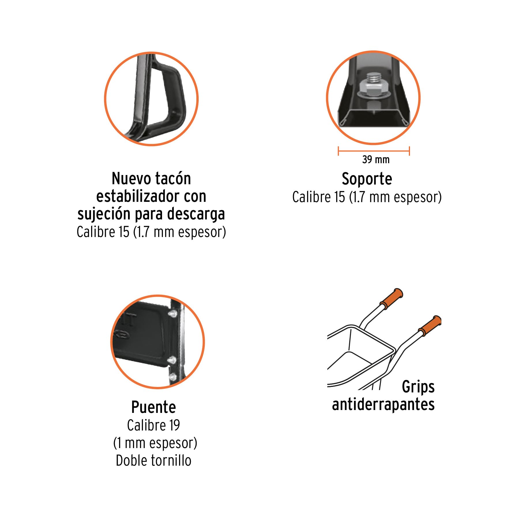 - Soportes de uso pesado, mayor estabilidad en cualquier tipo de superficie