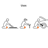 - Rodilleras ajustables con banda elástica. Fabricadas en poliester y EVA (Etil-vinyl-acetato) con gel para máximo confort