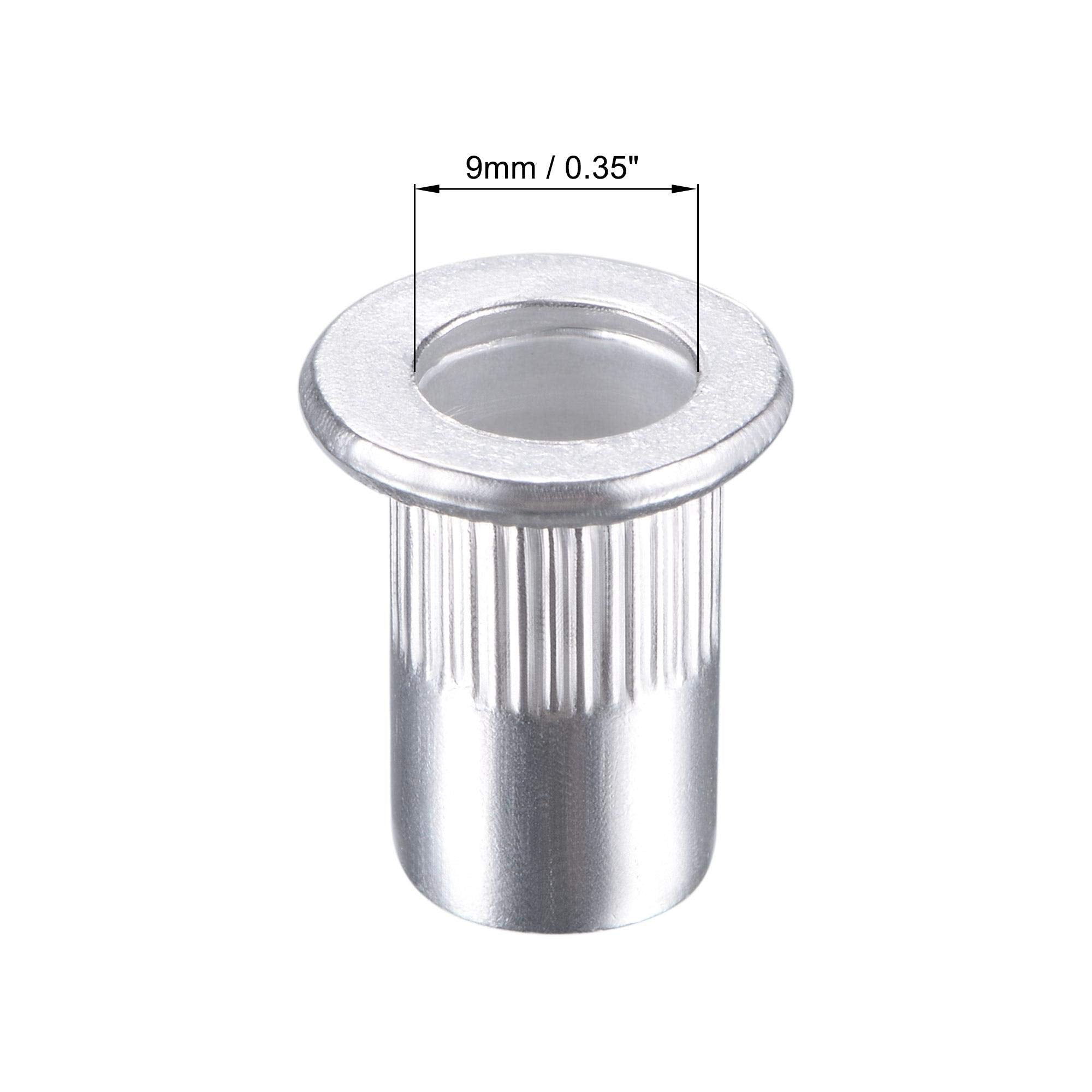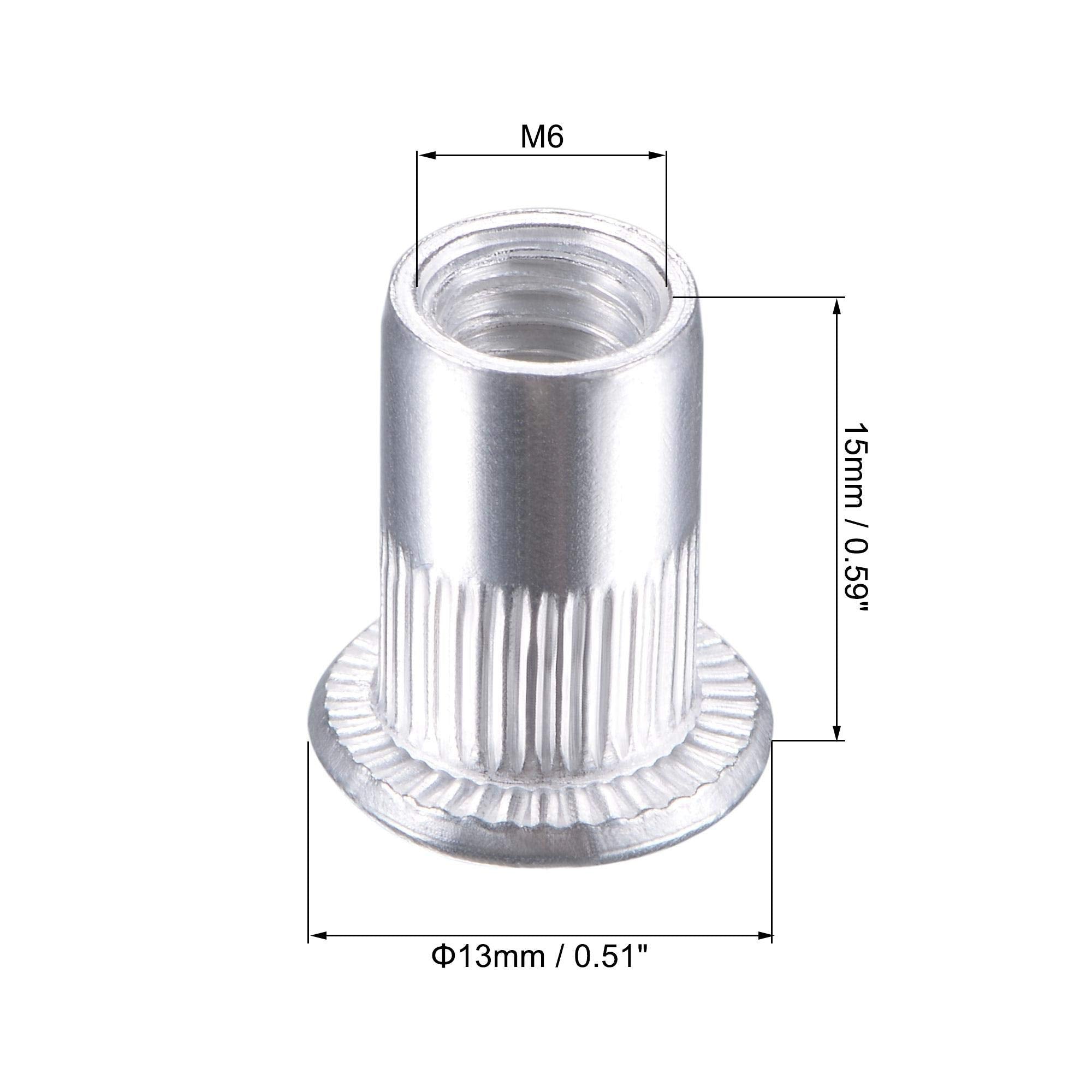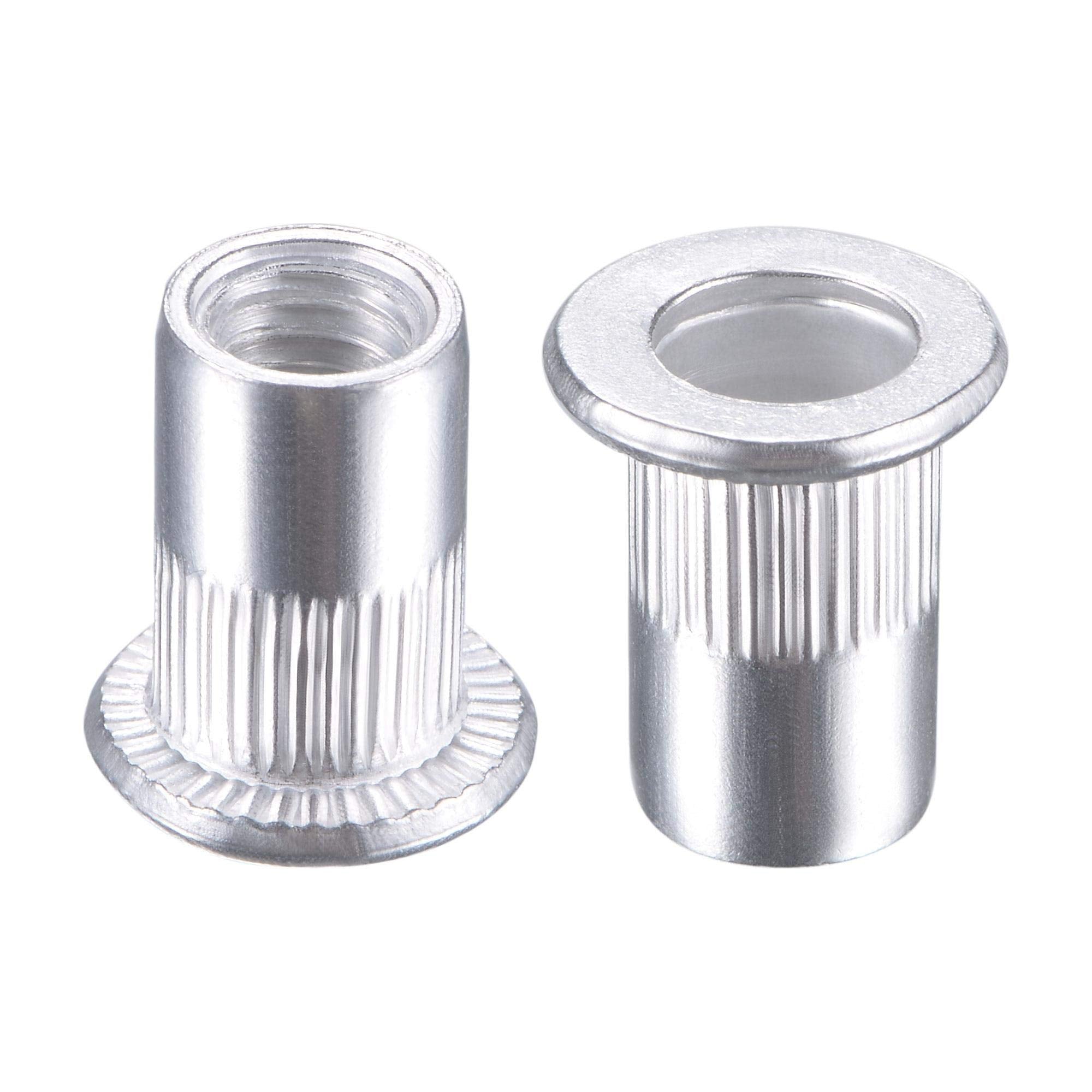 🔩 uxcell Tuercas de remache M6 de aleación de aluminio moleteado cabeza plana rosca tuerca plata 100 piezas
