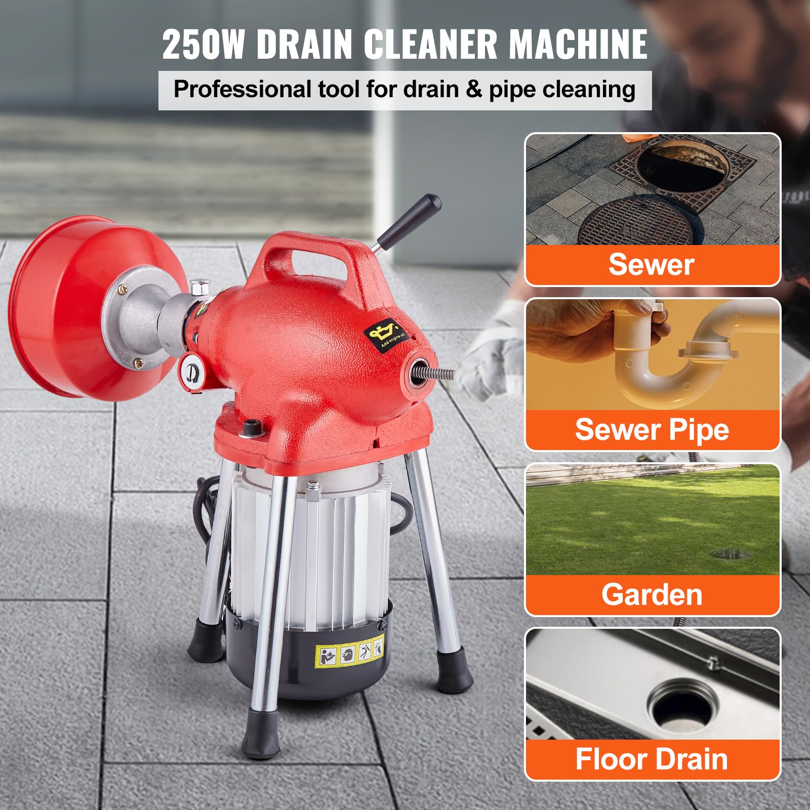 - Motor eficiente de 250 W: nuestra barrena de alcantarillado cuenta con un potente motor de 250 W, que funciona a alta velocidad para una limpieza eficiente y rápida de drenaje. El motor de alambre de cobre proporciona una conductividad superior, baja resistencia y alta eficiencia, abordando los zuecos duros con facilidad