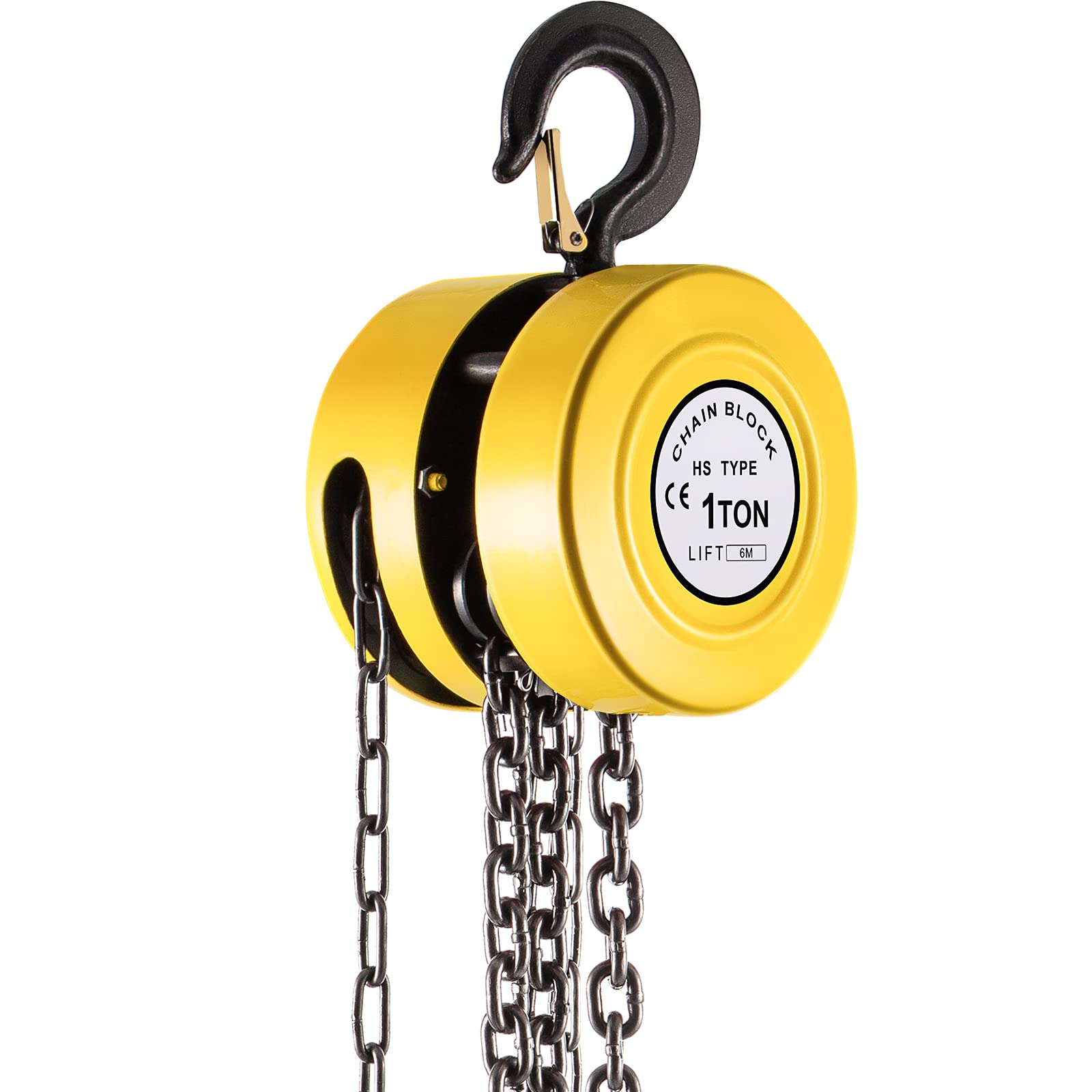 Polipasto de cadena de mano, bloque de cadena de capacidad de 1 tonelada, bloque de cadena manual de elevación de 20 pies, polipasto manual con construcción de acero de grado industrial para