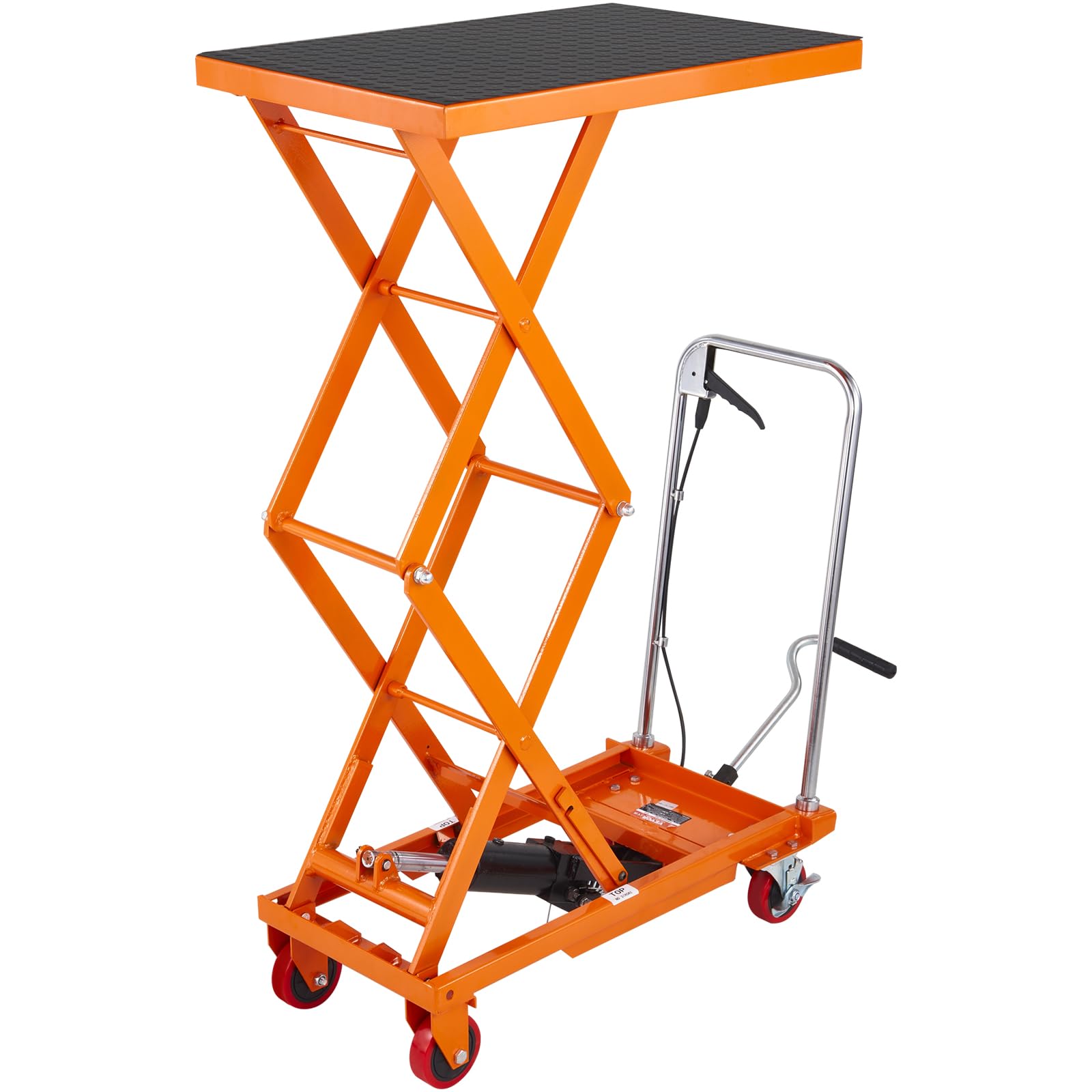Carrito de Mesa de elevación hidráulica, Capacidad de 350 Libras, 50 Pulgadas, con 4 Ruedas y Almohadilla Antideslizante, para manejo y Transporte de Materiales, Color Naranja
