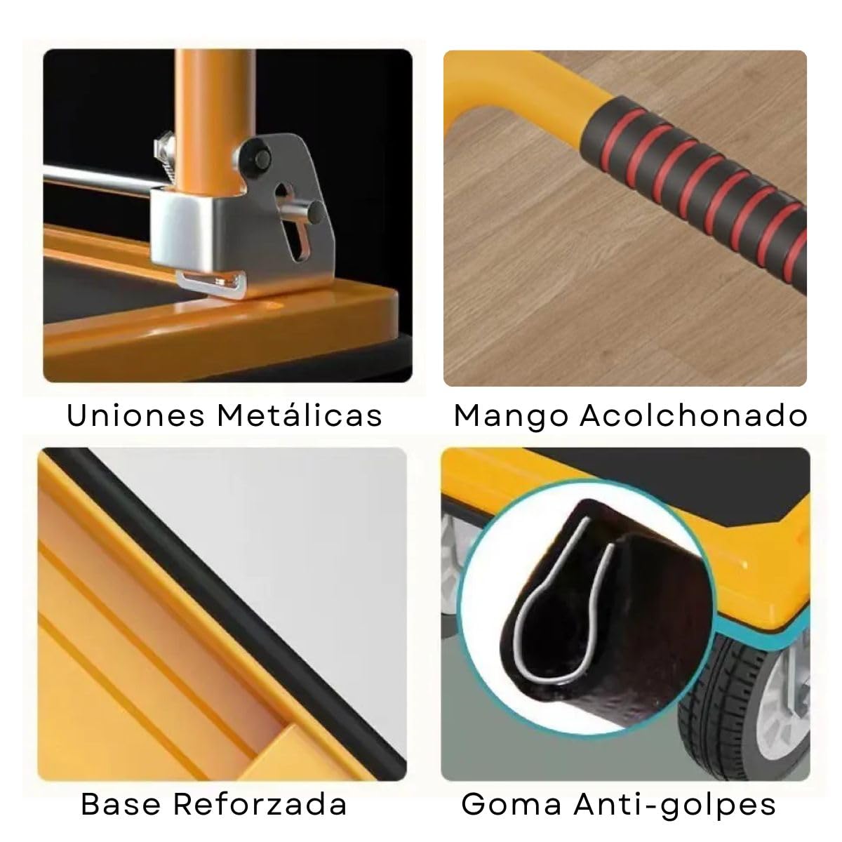 Carro Patin Diablito con Ruedas Giratorias Plataforma De Carga Plana Plegable Carrito Manual de Empuje 90x60cm Mulituso Hogar Oficina Almacen | Resistente Práctico Capacidad 375kg Amarillo