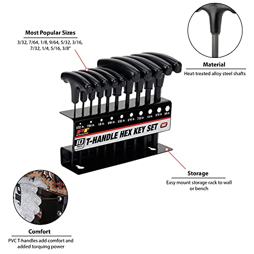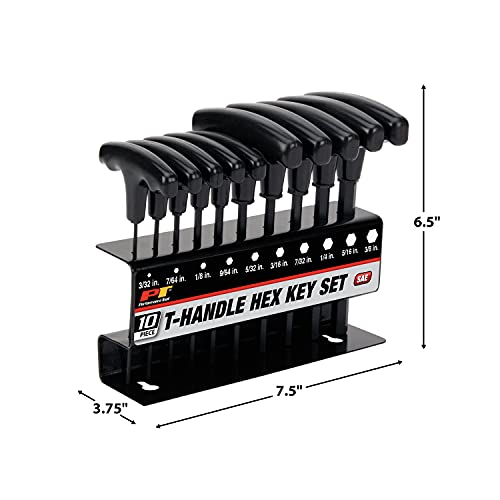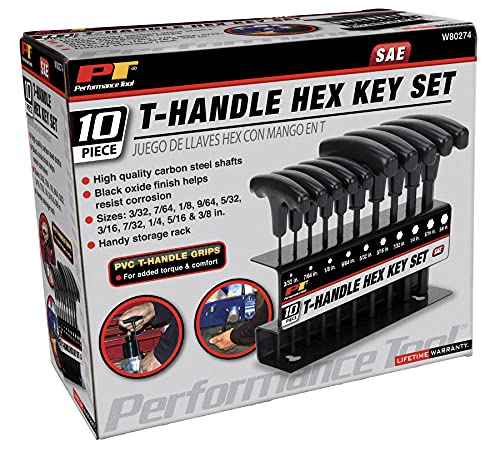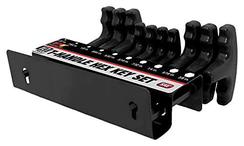 Detalles: WLMW80274 Características: Ejes de acero carbono de alta calidad. Empuñadura PVC en forma de T para torsión y confort adicional. Rack para una práctico almacenamiento. Juego de llaves hexagonales SAE con empuñadura en T (10 piezas). Tipo de producto: Llaves hexagonales. Dimensiones: Tamaño total de extremo a extremo: 8.8" (22 cm.). Ancho total de lado a lado: 8" (20 cm.). Peso total del producto: 7.2 kg (2.55 libras).