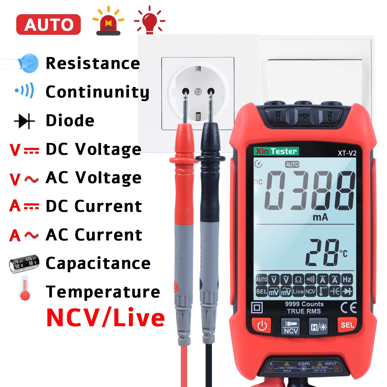 ▶ Multimetro Digital Profesional TRMS 9999 cuenta, Voltímetro, Amperímetro, para Medir CA/CC Corriente y Tensión, NCV,Capacitancia,Diodo,Continuidad,Resistencia,Batería, Temperatura