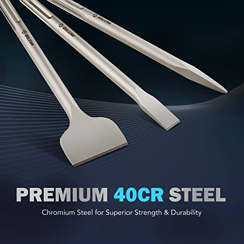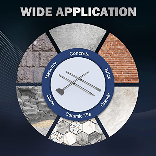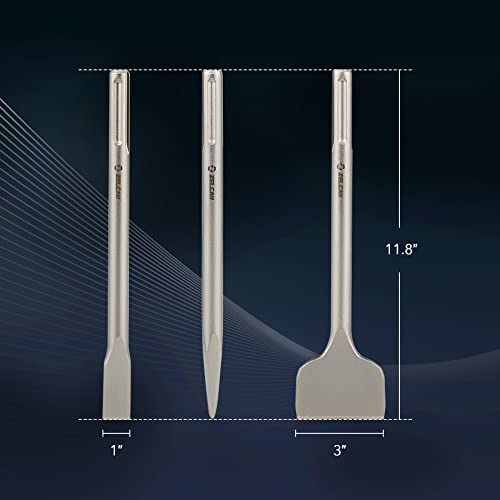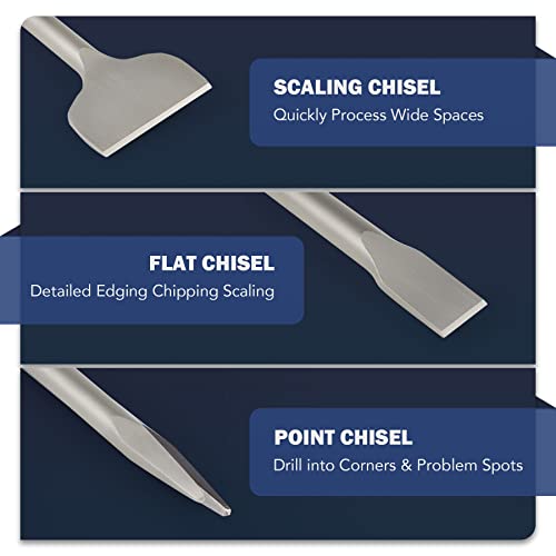 - Juego de cinceles 3 en 1: este juego de 3 puntas de cincel multifuncional de Zelcan incluye un cincel plano, cincel de punta y cincel de escala para trabajar en cualquier material, desde azulejos de cerámica hasta hormigón, ladrillo, mampostería hasta piedra real y artificial