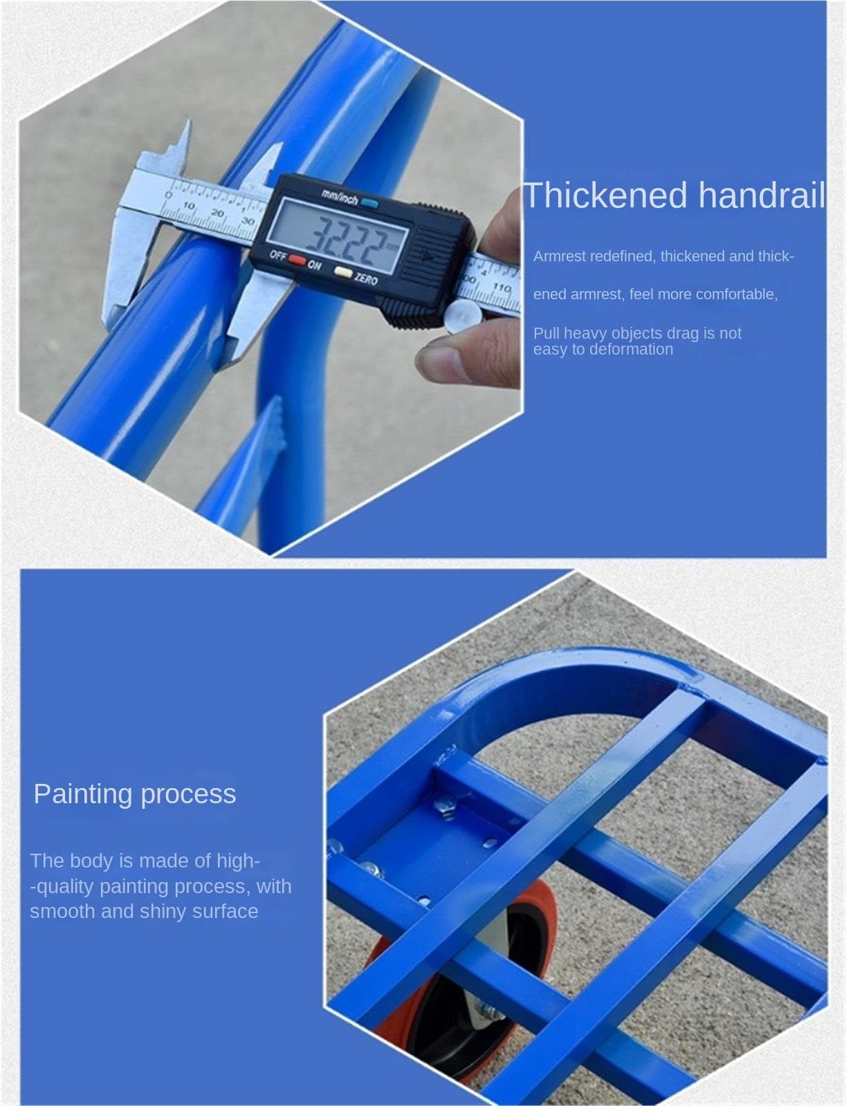Gran espacio de almacenamiento: Ofrece una amplia superficie plana para cargar y transportar artículos grandes en un solo viaje, mejorando la eficiencia de manejo.